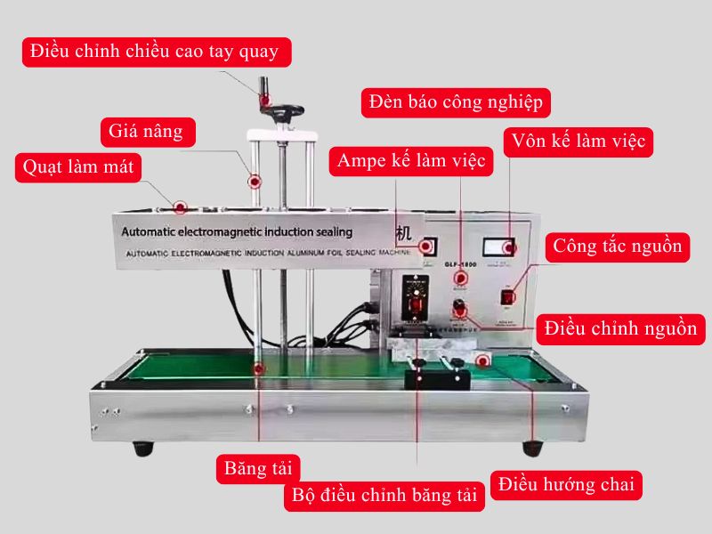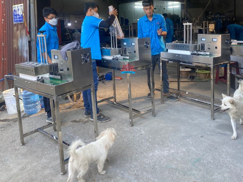 Thiết bị này hoạt động dựa trên nguyên lý cảm ứng điện từ, làm nóng chảy lớp màng nhôm để dán chặt vào miệng hũ nhựa hoặc thủy tinh, giúp niêm phong kín sản phẩm, ngăn không khí và vi khuẩn xâm nhập, đồng thời giữ nguyên hương vị và chất lượng sa tế trong thời gian dài.