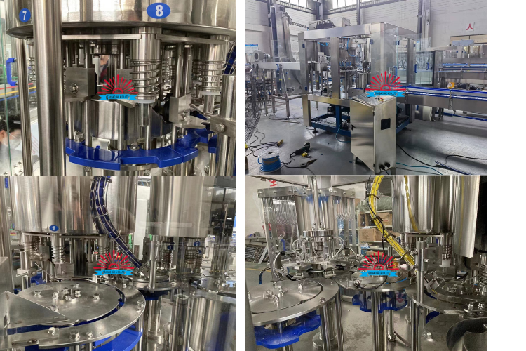 - Sau khi hoàn tất quy trình chiết rót, máy sẽ thực hiện đóng nắp chai tự động. Với thiết kế nhiều đầu đóng nắp nên máy có thể đóng liên tục từ 14000-15000 chai trong một giờ với dung tích 350ml và 500ml, từ 4000-4500 chai với dung tích 1500ml.